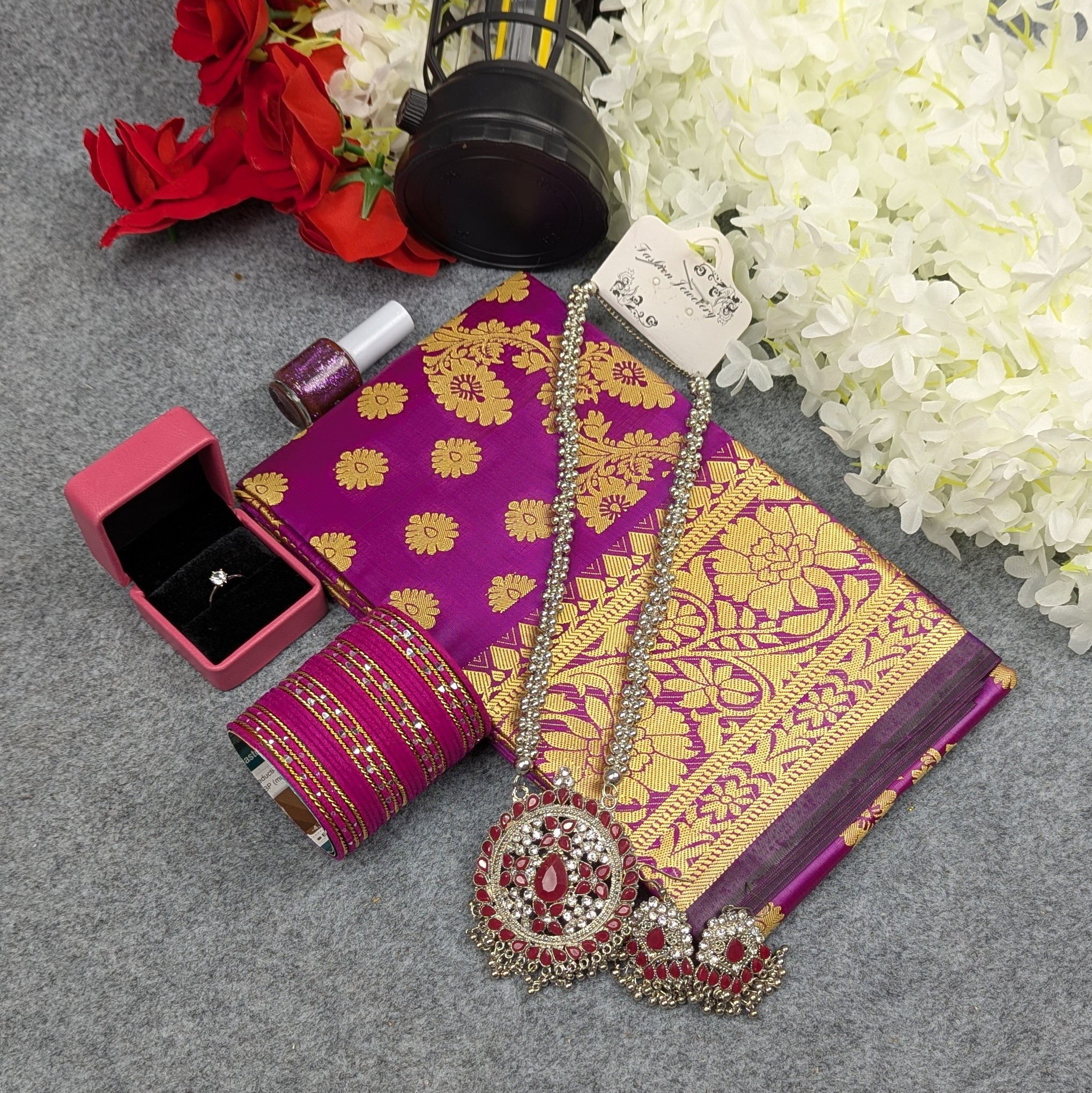 বিশেষ মুহূর্তে বিশেষ মানুষকে দিন প্রিমিয়াম সিল্ক কাতান শাড়ির কম্বো সেট –